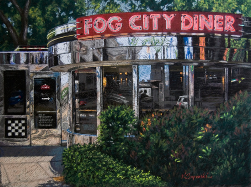 Fog City Diner - 18"x24" - Private Collection Won Pastel Award at Kent Art Association President's Show, August 2010 Won First Place Pastels at Tolland County Art Association show, 2010 |